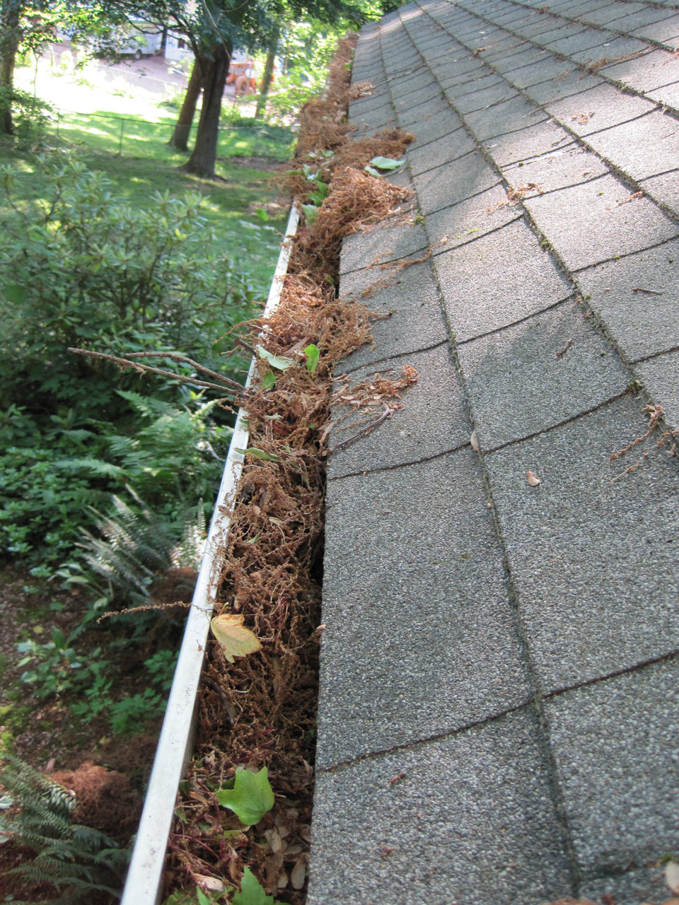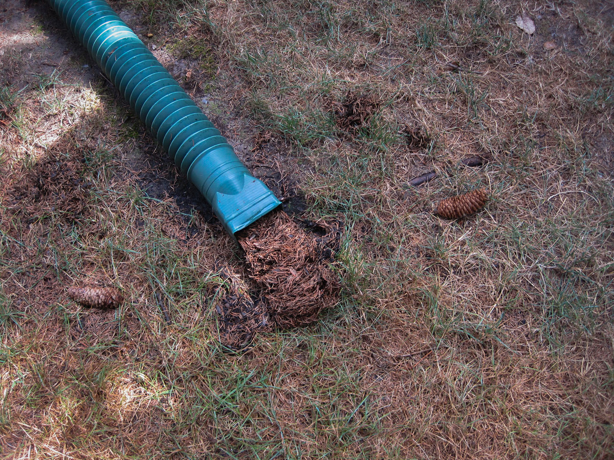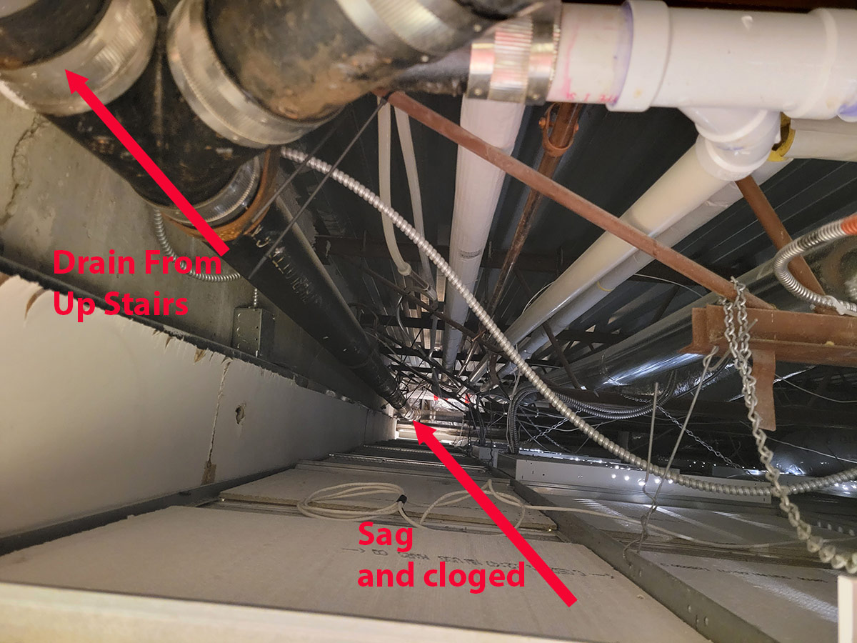 Not enough whoosh to clear the whole system out to the road. Material builds up and then clogs the drain flodding the office below.