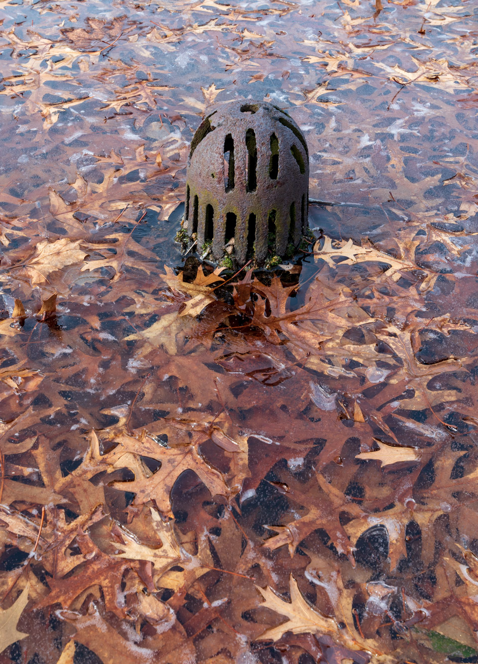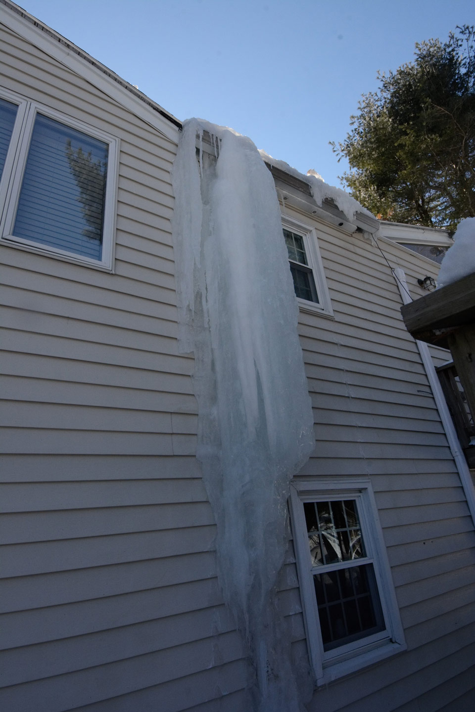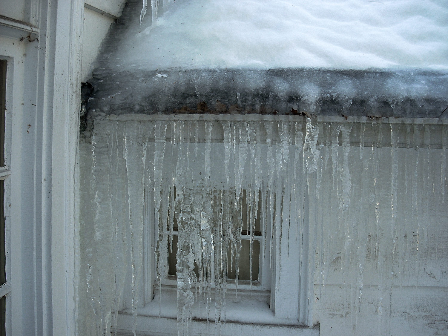 No maintenence had been done on the drain and now small leaves had frozen inside the grates clogging them on this roof and then everything froze to prevent roof from draining.