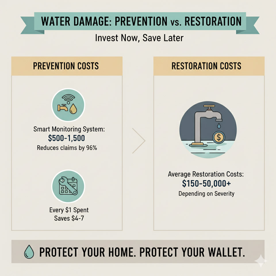 - Smart water monitoring system: $500-1,500 (reduces claims by 96%)